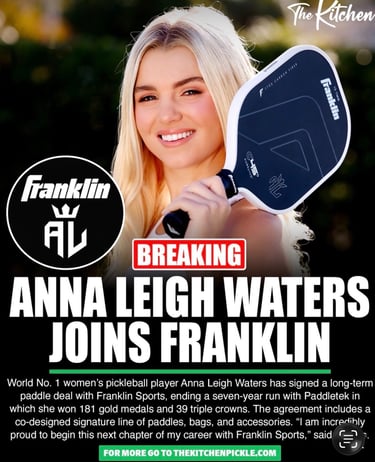 The announcement that Anna Leigh Waters has signed with Franklin Sports after seven years with Paddletek has been framed as a landmark moment in professional pickleball.